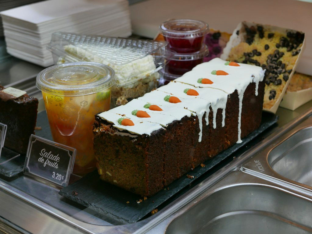 J’adore la présentation du gâteau au carotte et les bagels ont l’air délicieux.